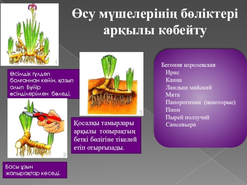 Өсімдік гүлдеп болғаннан кейін, қазып алып Бүйір өсінділерімен бөледі.
