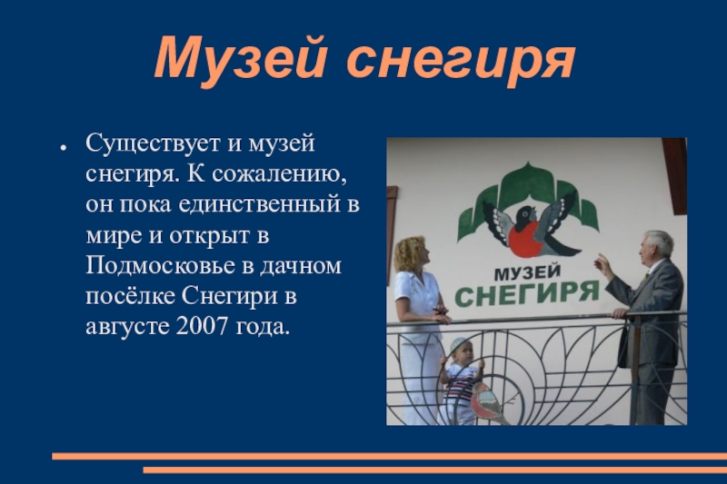 Существует и музей снегиря. К сожалению, он пока единственный в