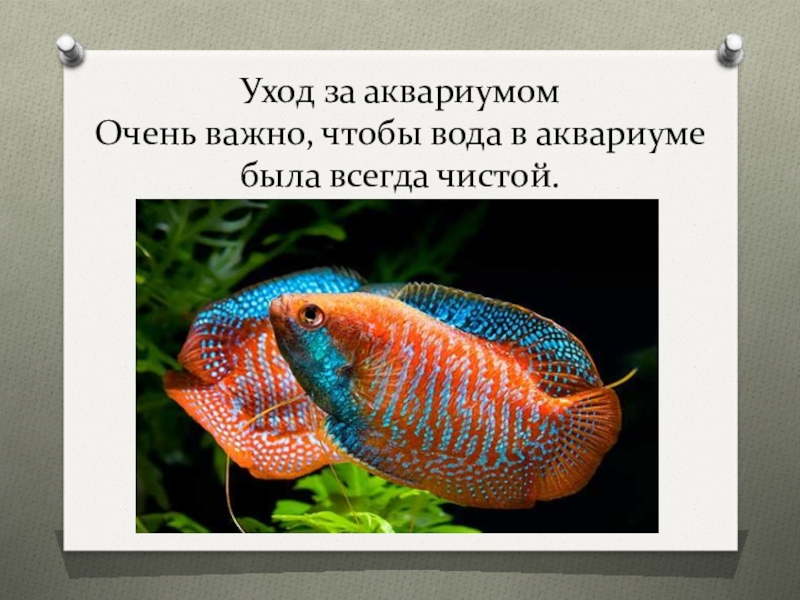 Слайд 9Уход за аквариумом Очень важно, чтобы вода в аквариуме была всегда чистой.