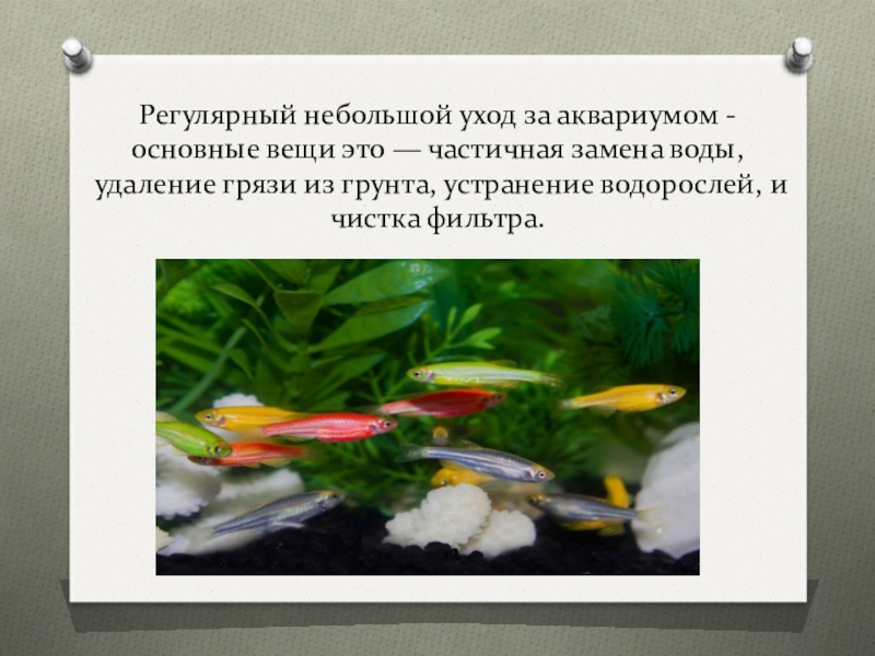 Слайд 5Регулярный небольшой уход за аквариумом - основные вещи это — частичная
