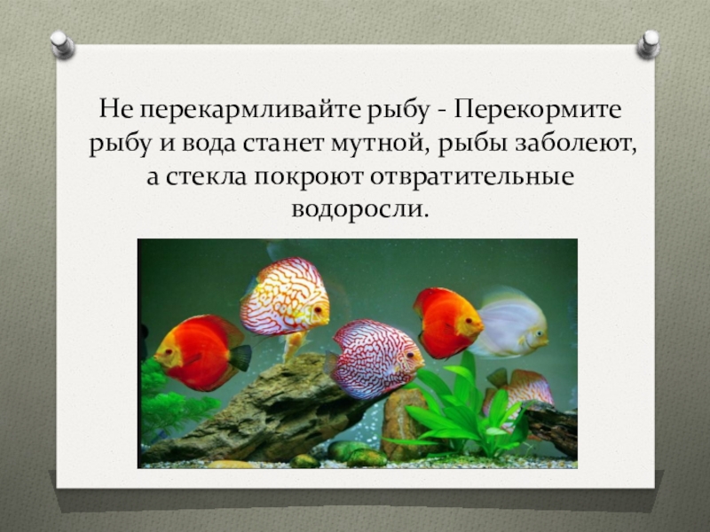 Слайд 4Не перекармливайте рыбу - Перекормите рыбу и вода станет мутной, рыбы
