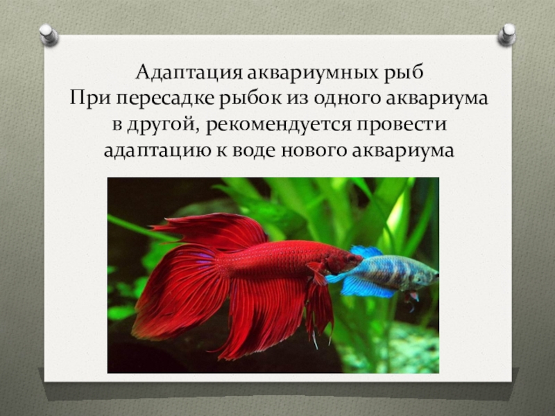 Слайд 10Адаптация аквариумных рыб При пересадке рыбок из одного аквариума в другой, рекомендуется