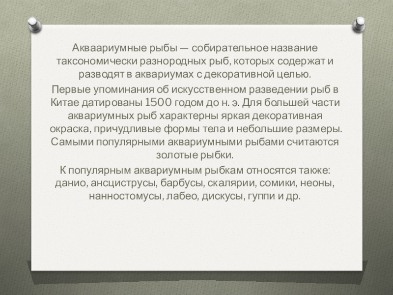 Слайд 2Акваариумные рыбы — собирательное название таксономически разнородных рыб, которых содержат и