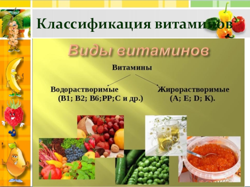 По растворимости в воде или жирах все витамины делят на : водорастворимые и жирорастворимые.