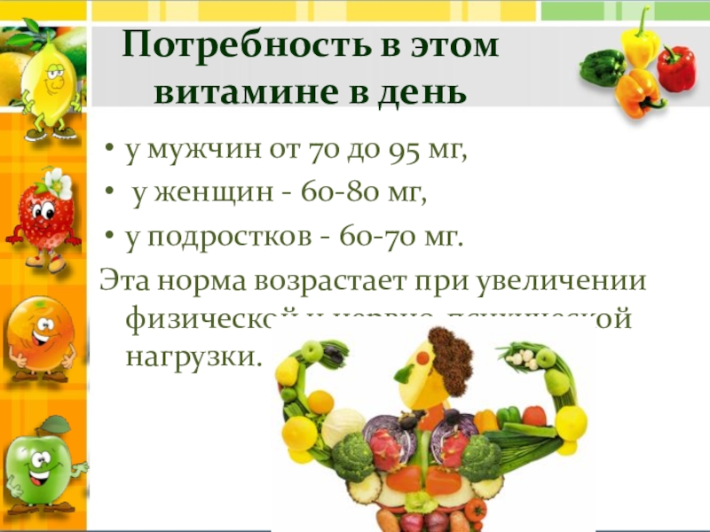 Потребность человека в витаминах зависит от возраста, состояния здоровья, условий жизни, характера деятельности, времени года.