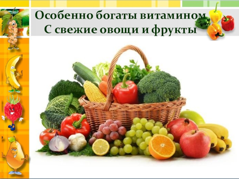 Слайд 10Особенно богаты витамином С свежие овощи и фрукты