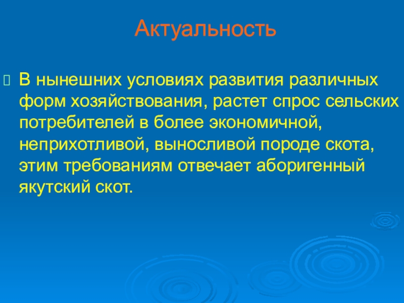 АктуальностьВ нынешних условиях развития различных форм хозяйствования, растет спрос сельских потребителей в более экономичной, неприхотливой, выносливой породе