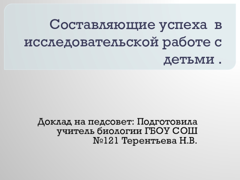 учитель биологии ГБОУ СОШ №121 Терентьева Н.В.