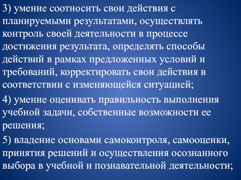 Слайд 53) умение соотносить свои действия с планируемыми результатами, осуществлять контроль своей