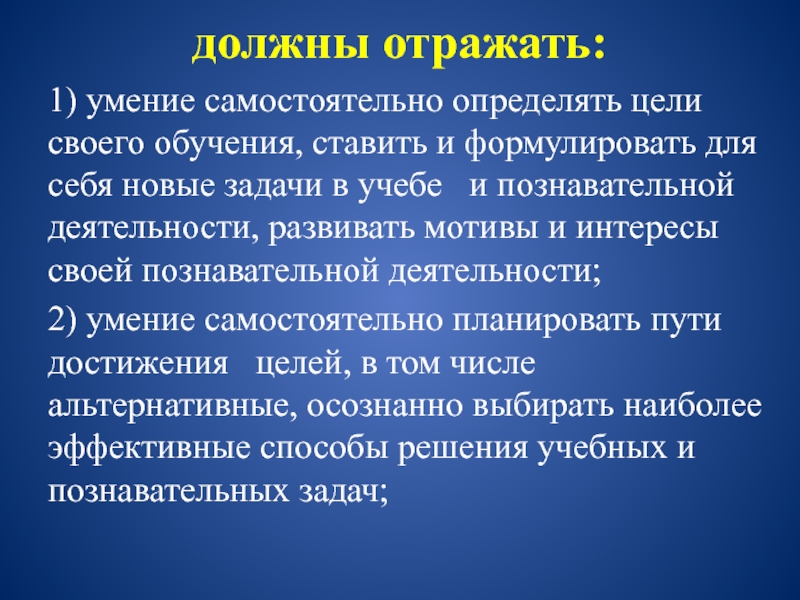 1) умение самостоятельно определять цели своего обучения, ставить и формулировать