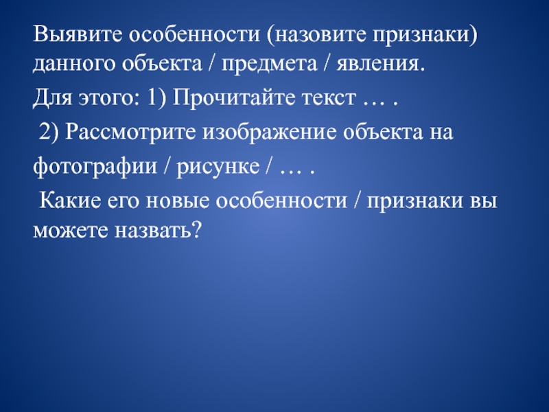 Слайд 24Выявите особенности (назовите признаки) данного объекта / предмета / явления.