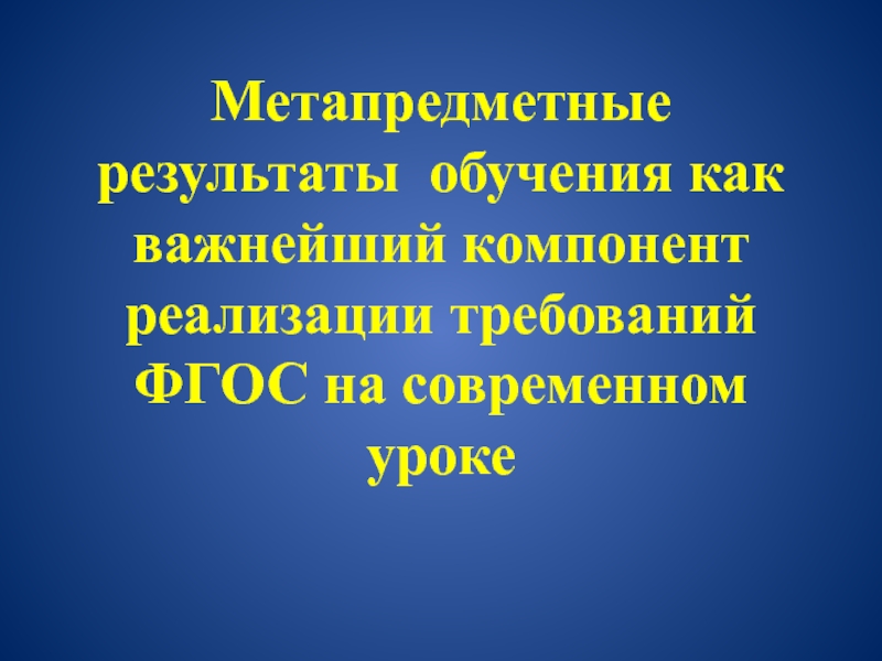 Слайд 1Метапредметные результаты обучения как важнейший компонент реализации требований ФГОС на современном