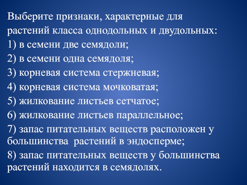 8) запас питательных веществ у большинства растений находится в семядолях.