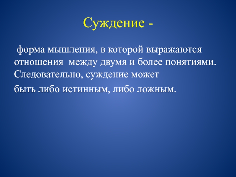 мысль, фиксирующая признаки отображаемых в ней предметов и явлений, позволяющие отличать