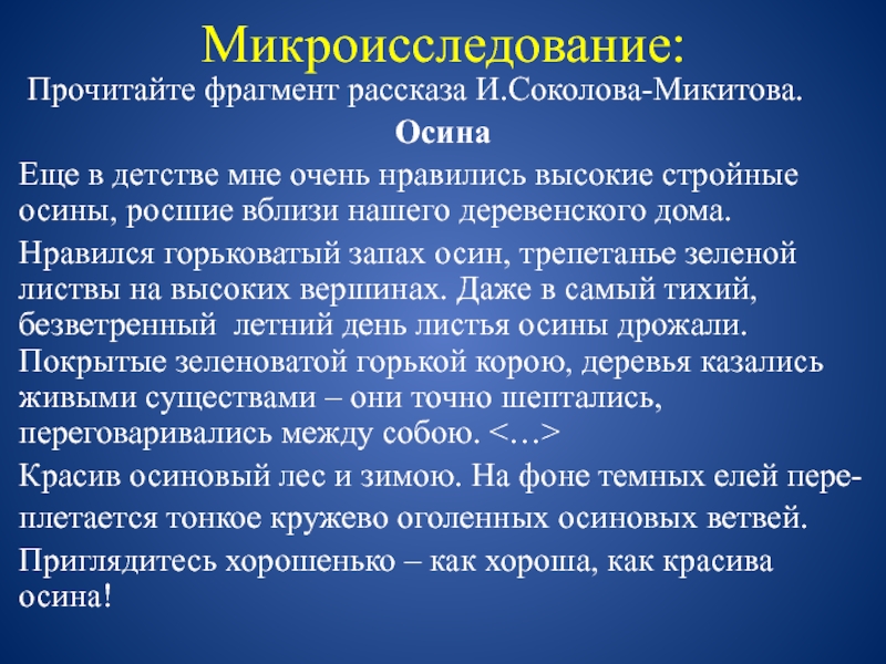 Прочитайте фрагмент рассказа И.Соколова-Микитова.