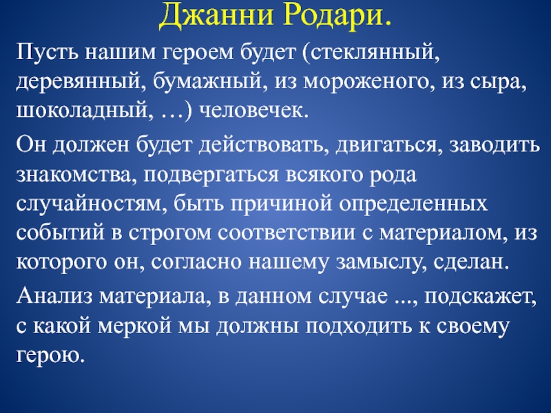 Анализ материала, в данном случае ..., подскажет, с какой меркой мы должны подходить к своему герою.