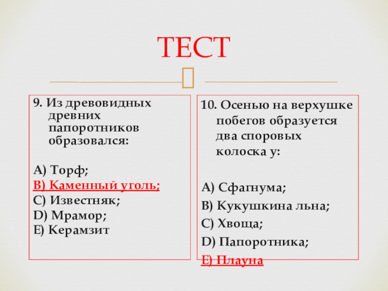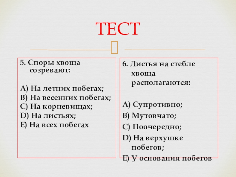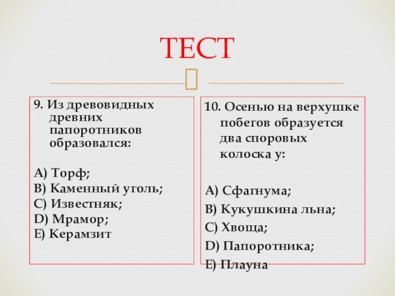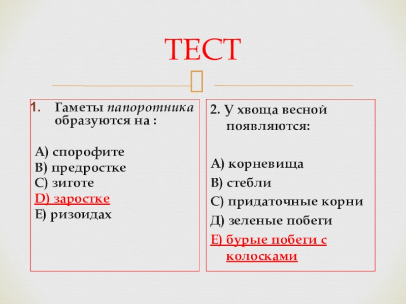 10. Осенью на верхушке побегов образуется два споровых колоска у: