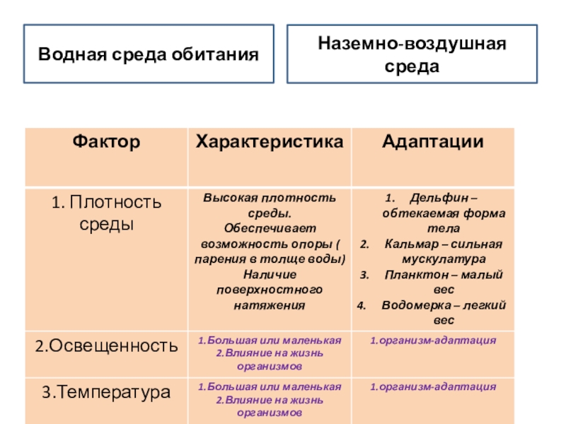 Цель: Изучить среды жизни, выяснить какие факторы и как, изменяют жизнь организмов