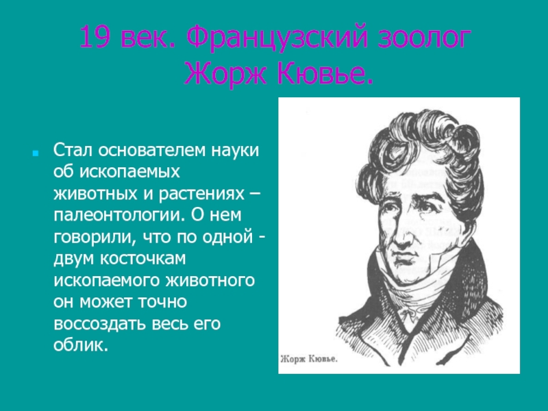 и растениях – палеонтологии. О нем говорили, что по одной - двум косточкам ископаемого животного он может точно воссоздать весь его облик.