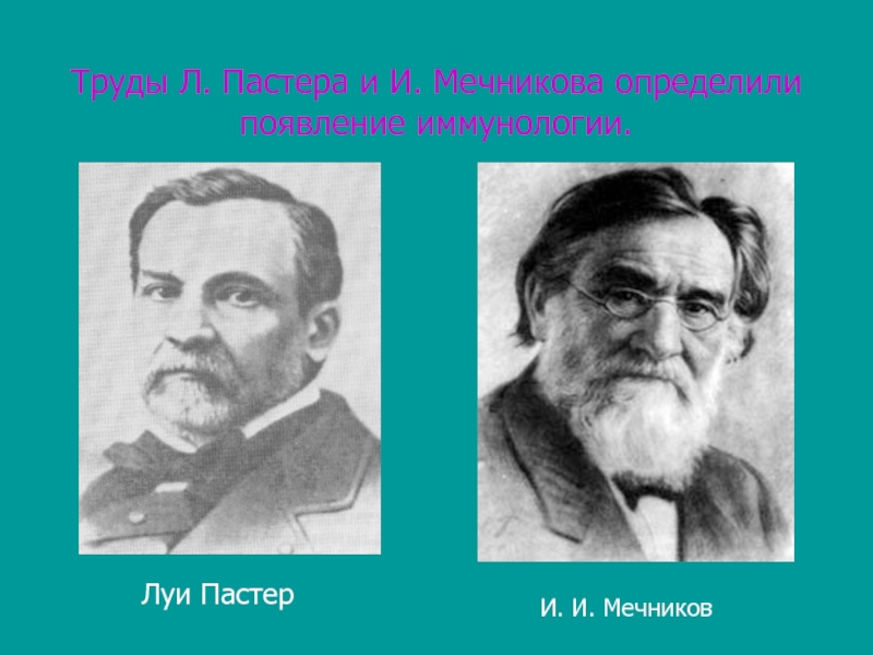 Слайд 20Труды Л. Пастера и И. Мечникова определили появление иммунологии.