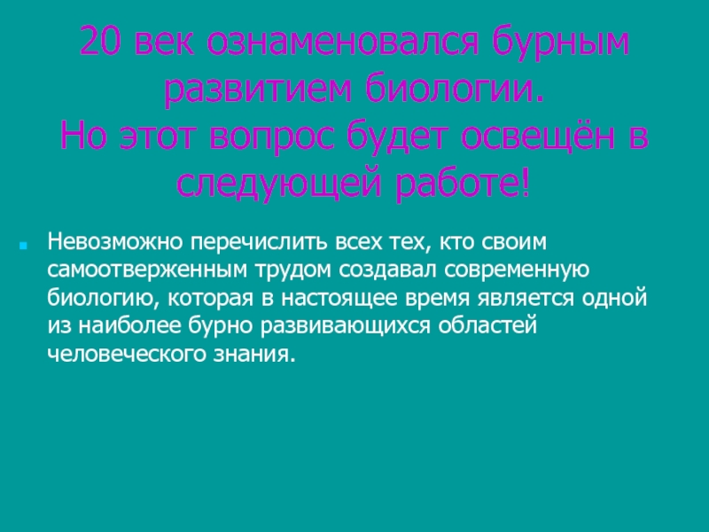 Слайд 2520 век ознаменовался бурным развитием биологии.