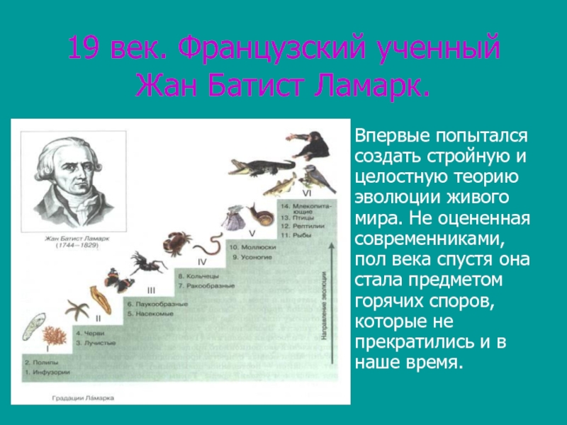 Слайд 1419 век. Французский ученный Жан Батист Ламарк.