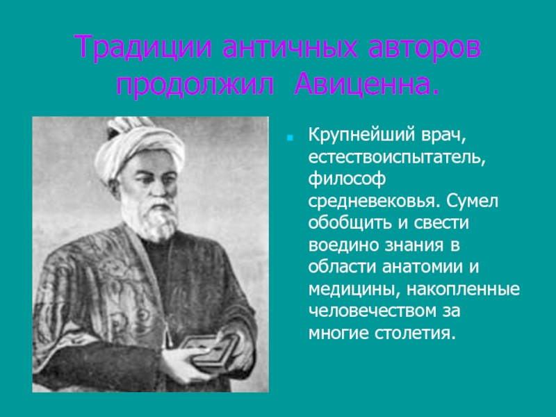 Слайд 8Традиции античных авторов продолжил Авиценна.