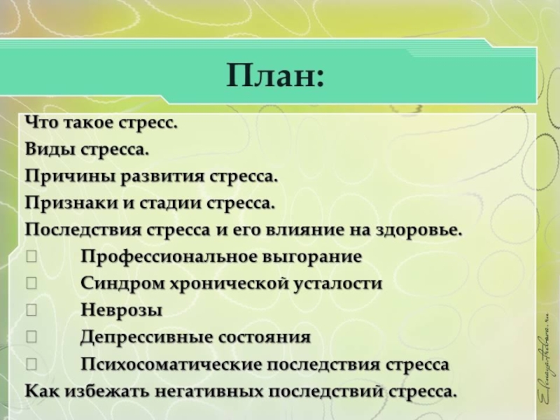 Презентация, доклад на тему Стресс и его последствия_презентация