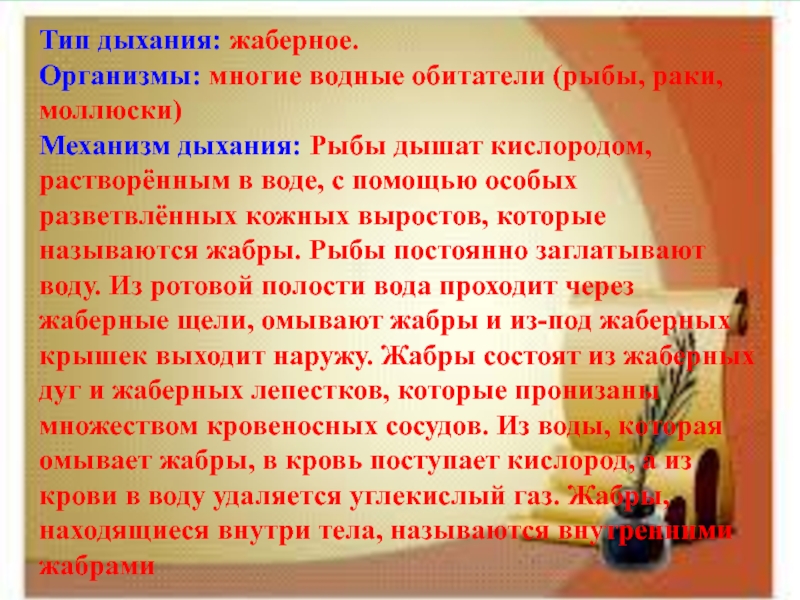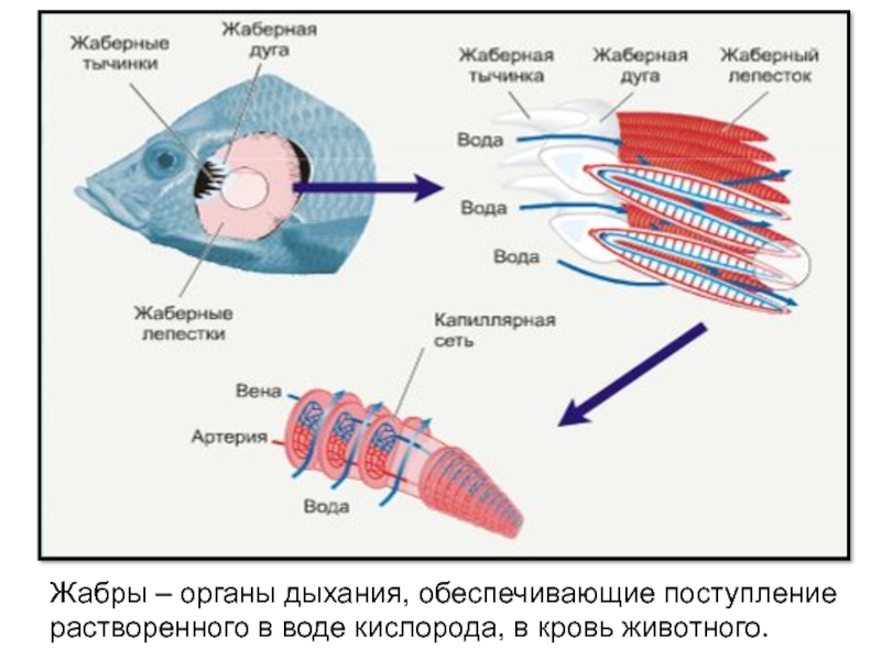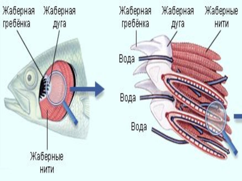Слайд 18Жабры – органы дыхания, обеспечивающие поступление растворенного в воде кислорода, в