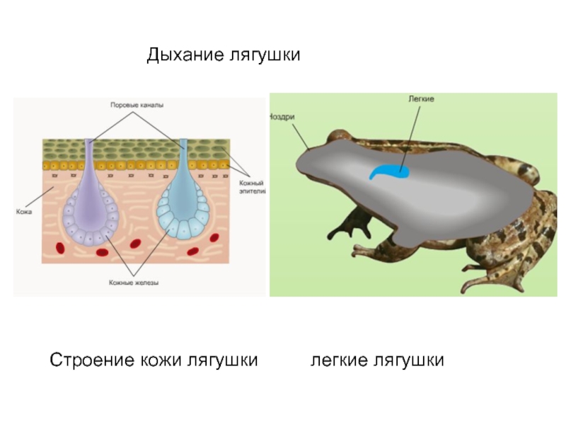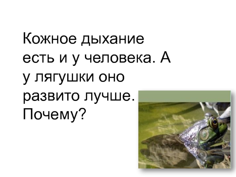 Слайд 23Кожное дыхание есть и у человека. А у лягушки оно развито
