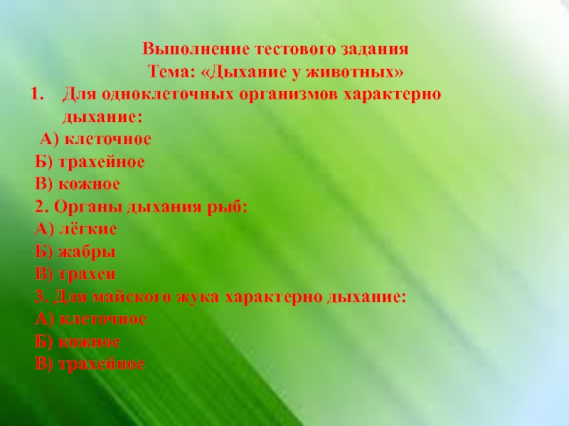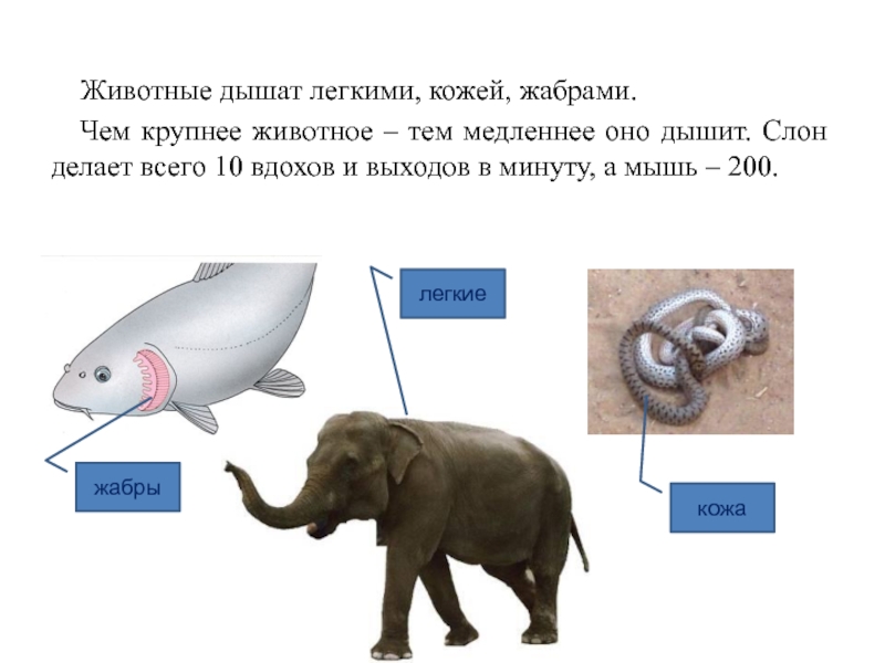 Слайд 29 Животные дышат легкими, кожей, жабрами.