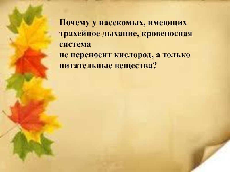 Слайд 13Почему у насекомых, имеющих трахейное дыхание, кровеносная система