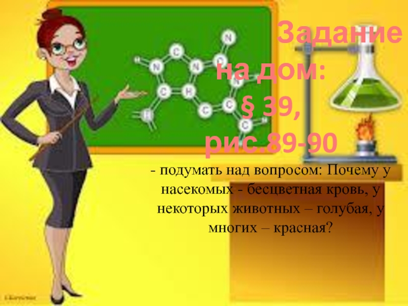 - подумать над вопросом: Почему у насекомых - бесцветная кровь, у некоторых животных – голубая, у многих – красная?