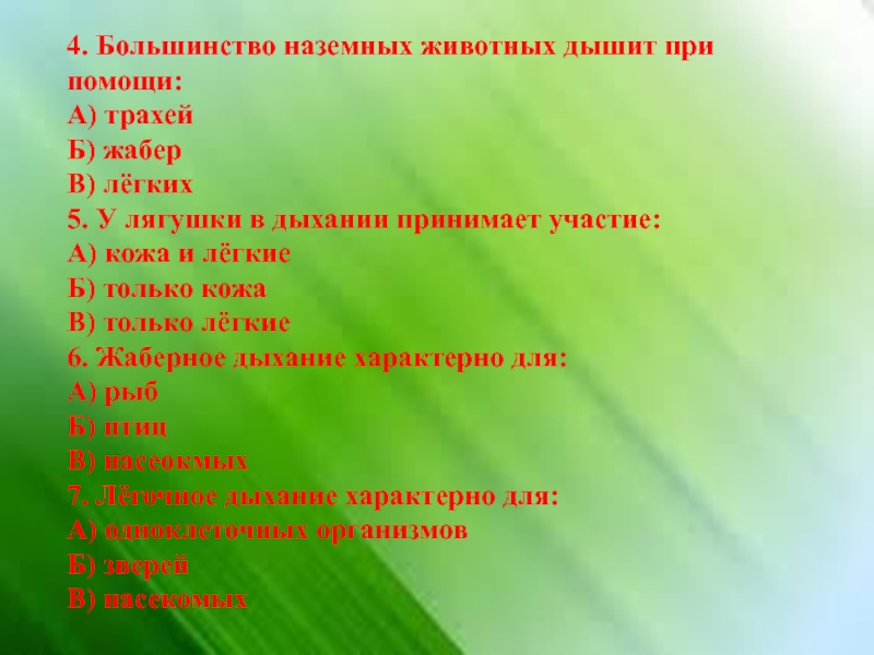 Слайд 364. Большинство наземных животных дышит при помощи: