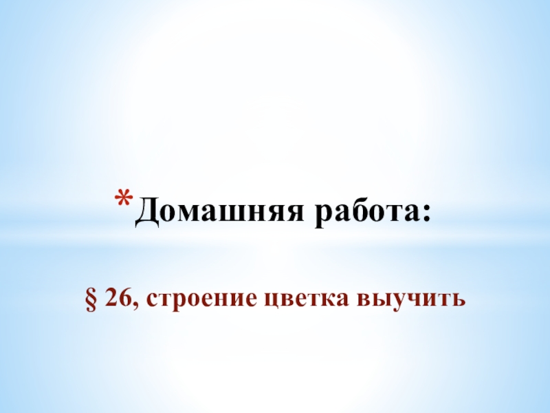 Домашняя работа: § 26, строение цветка выучить