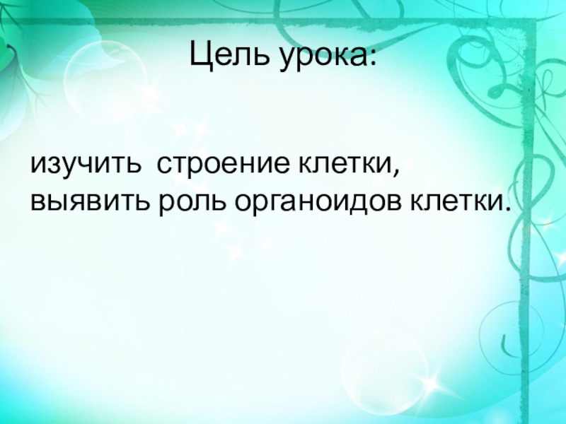 Цель урока:изучить  строение клетки, выявить роль органоидов клетки.