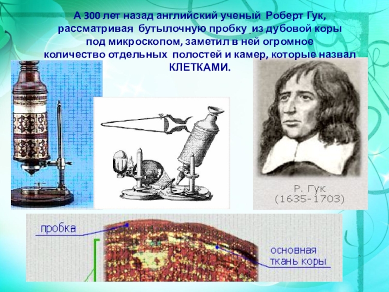 Слайд 5А 300 лет назад английский ученый Роберт Гук,