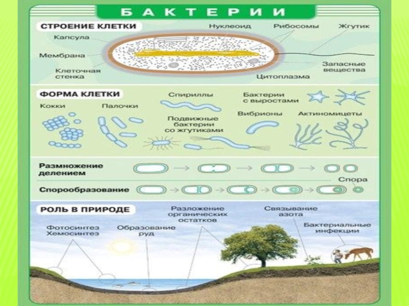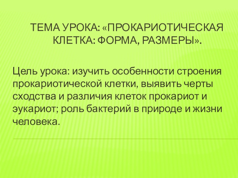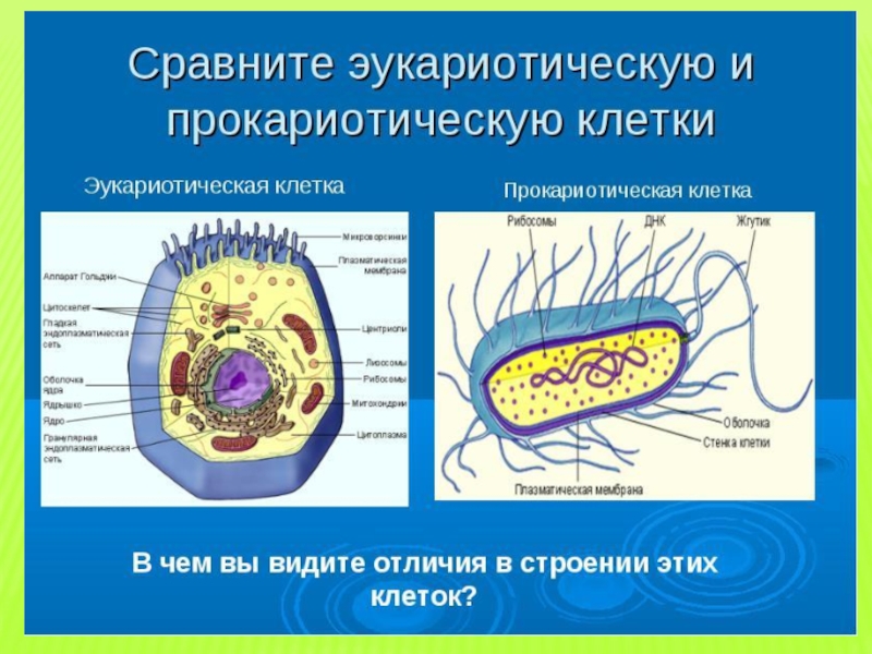клетки, выявить черты сходства и различия клеток прокариот и эукариот; роль бактерий в природе и жизни человека.