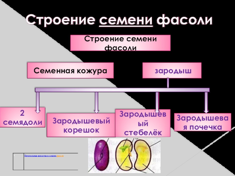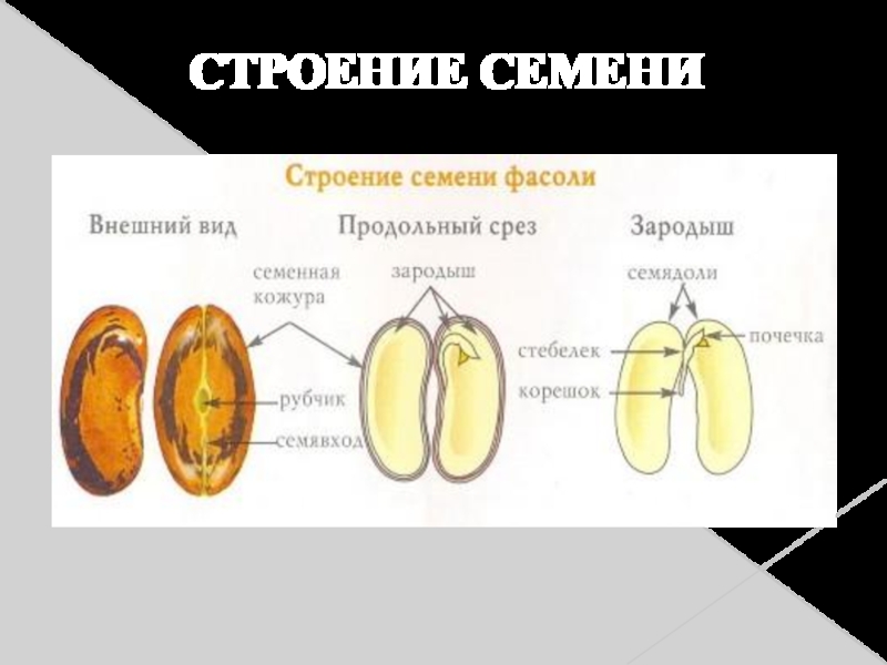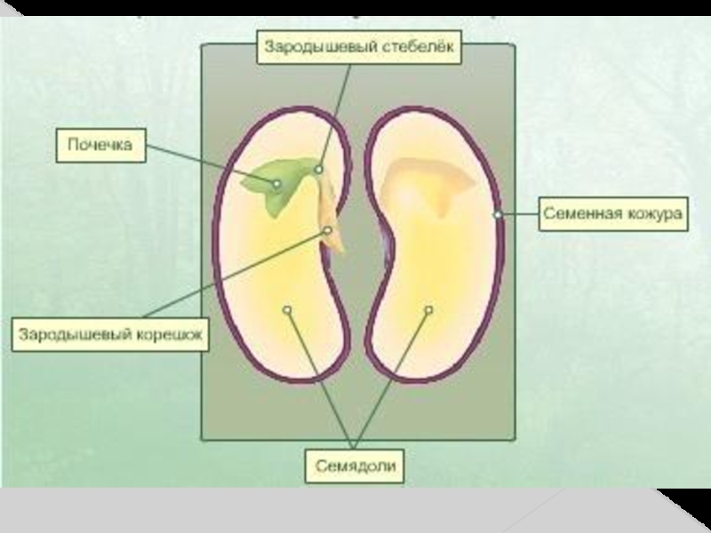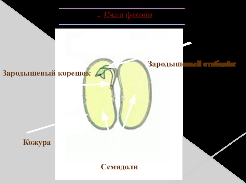 Семя фасолиЗародышевый корешок Кожура Семядоли Зародышевый стебелёк
