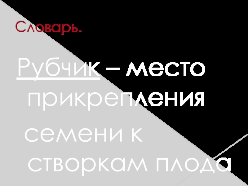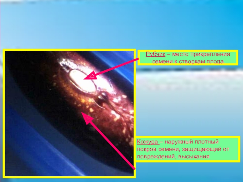 Рубчик – место прикрепления семени к створкам плода.Кожура – наружный плотный покров семени, защищающий от повреждений, высыхания