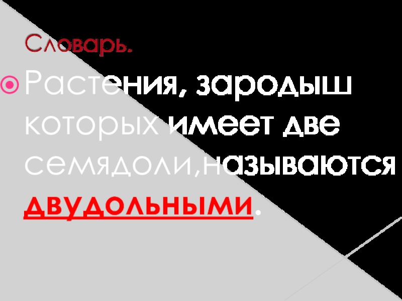 Слайд 15Растения, зародыш которых имеет две семядоли,называются двудольными.