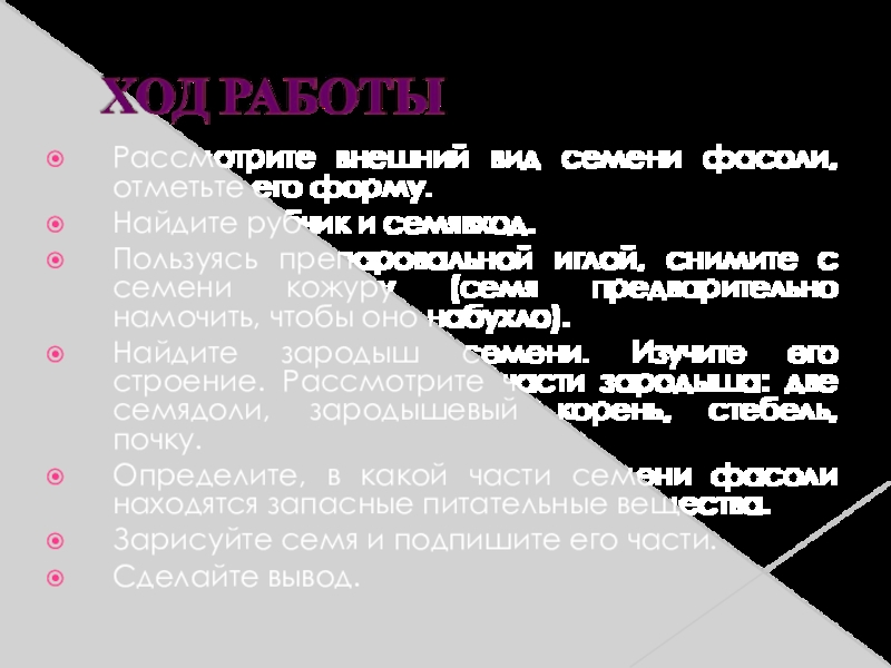 Оборудование: лупа, препаровальная игла, набухшие семена фасоли, салфетка.
