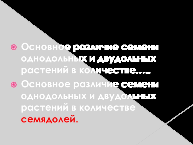 Основное различие семени однодольных и двудольных растений в количестве…..Основное различие семени однодольных и двудольных растений в количестве