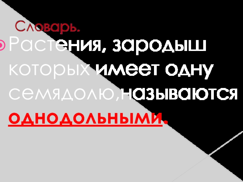 Слайд 16Растения, зародыш которых имеет одну семядолю,называются однодольными.