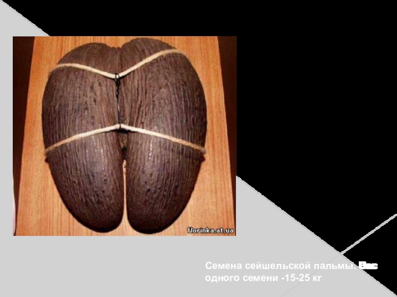 Слайд 3Семена сейшельской пальмы. Вес одного семени -15-25 кг