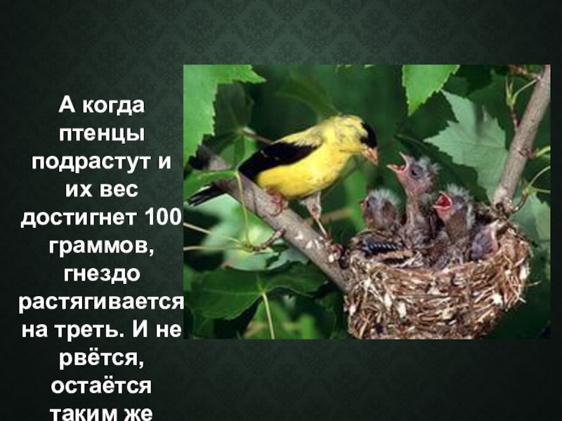 А когда птенцы подрастут и их вес достигнет 100 граммов, гнездо