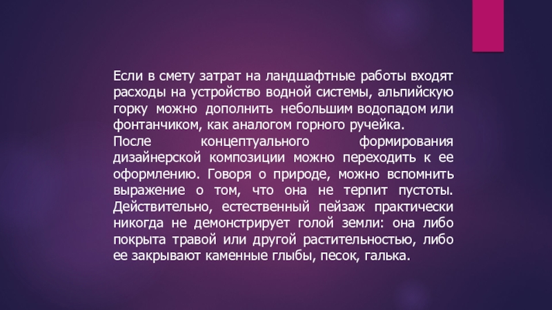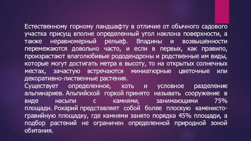 Слайд 9Естественному горному ландшафту в отличие от обычного садового участка присущ вполне