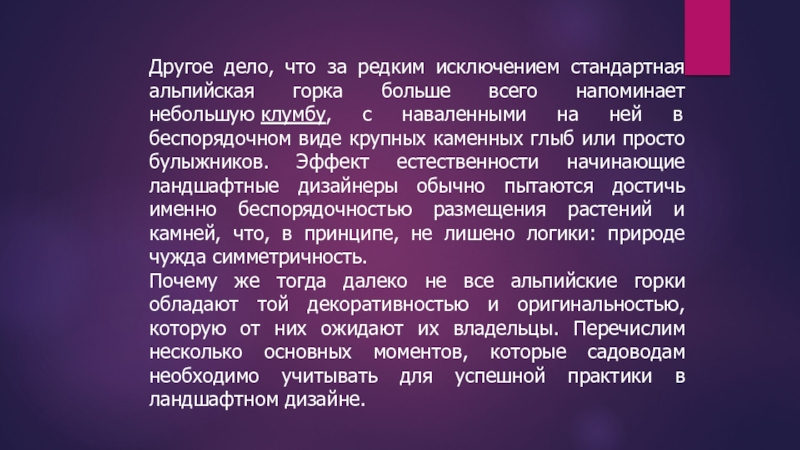 Слайд 5Между тем, «альпийская горка» при удачном ее воплощении может стать главным