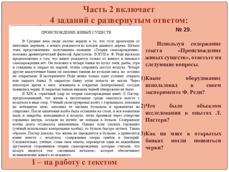 Используя содержание текста «Происхождение живых существ», ответьте на следующие вопросы.