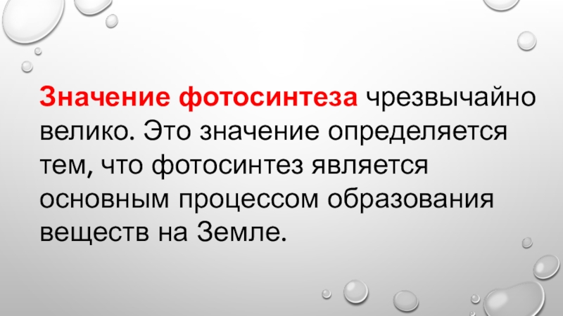 Слайд 7Значение фотосинтеза чрезвычайно велико. Это значение определяется тем, что фотосинтез является